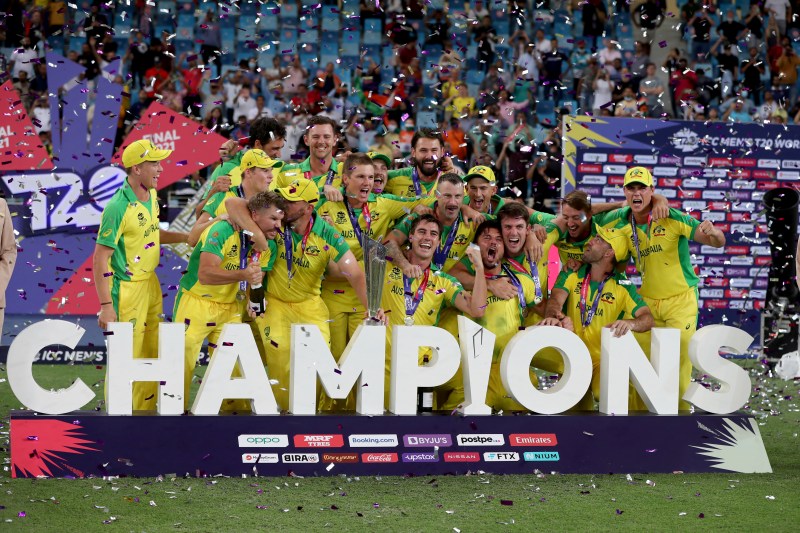 DUBAI – Mitchell Marsh and player of the tournament David Warner hit half-centuries as Australia beat New Zealand by eight wickets in the final on Sunday to win their first-ever T20 Cricket World Cup.