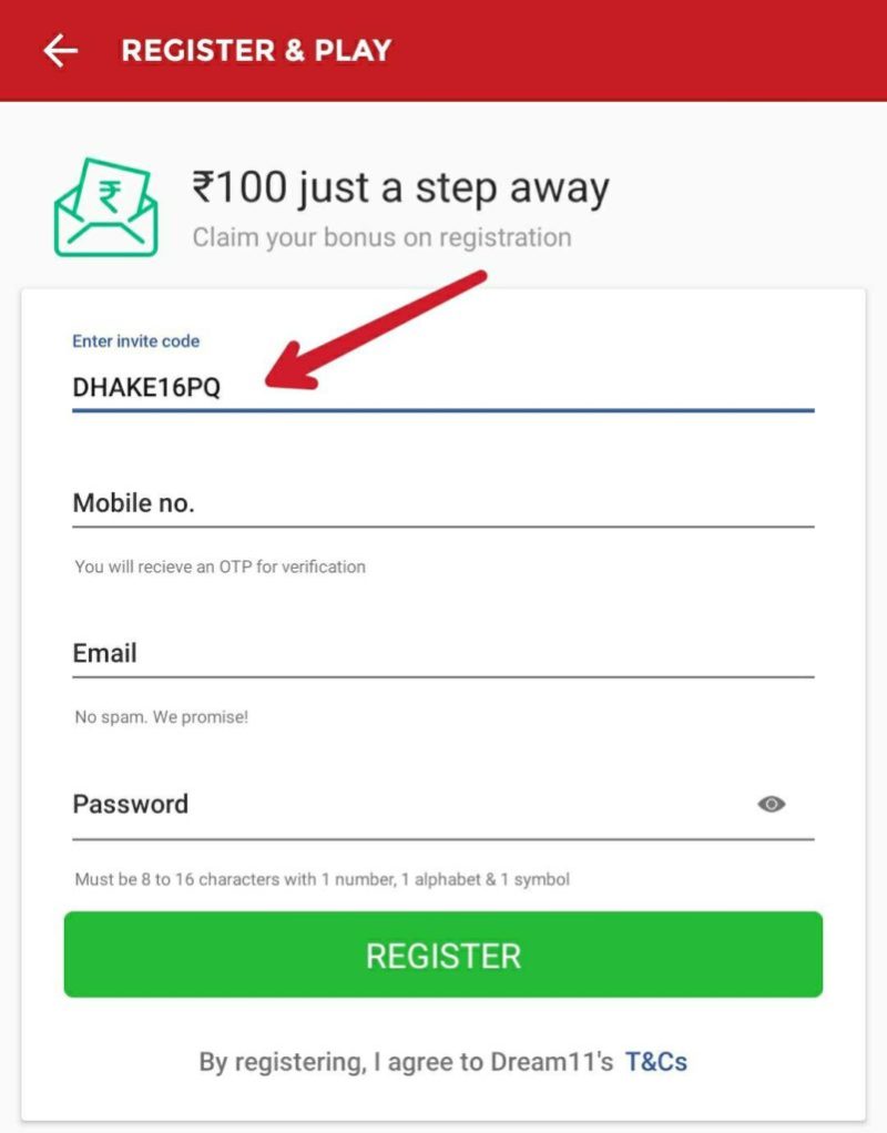 When you sign up, you need to enter the Dream11 invite code to receive the cash bonus. invitation code Dream11.