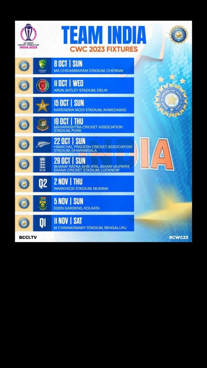 But now we have prepared short schedule for 2023 ICC World Cup. According to reports, the competition will be held from October 5th to November 19th. The first match will be played between reigning champions England and New Zealand at the Narendra Modi Stadium. October 5th.