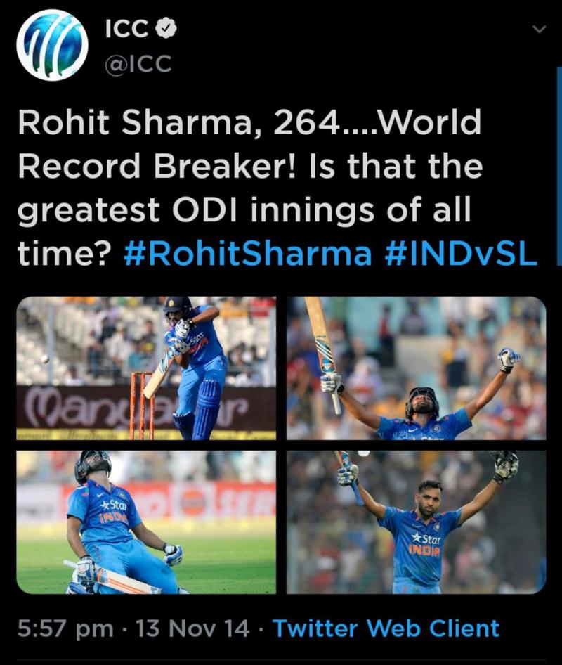 On this day in 2014, @ImRo45 scored 264 off 173 balls, the highest individual score in ODIs.