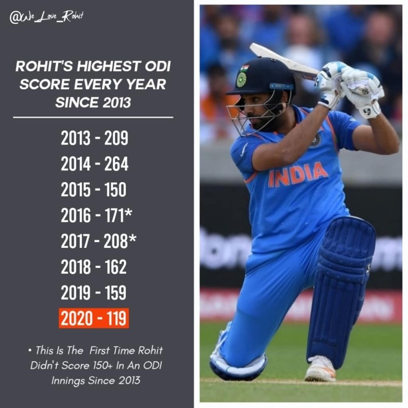 Sharma holds the distinction of being the only cricketer to score three double centuries in ODIs. His highest score of 264 against Sri Lanka in 2014 is the highest individual score in ODI history.