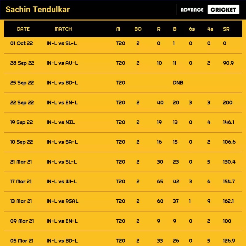 Sachin Tendulkar Match List