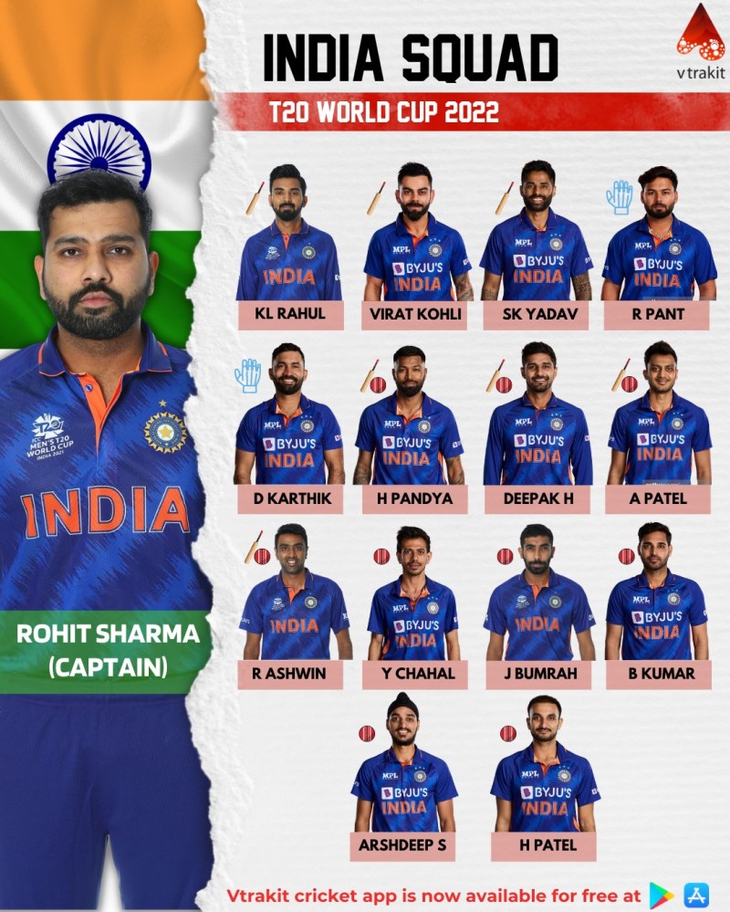 T20 World Cup 2022 India Team List: India Squad For World Cup 2022 Player List