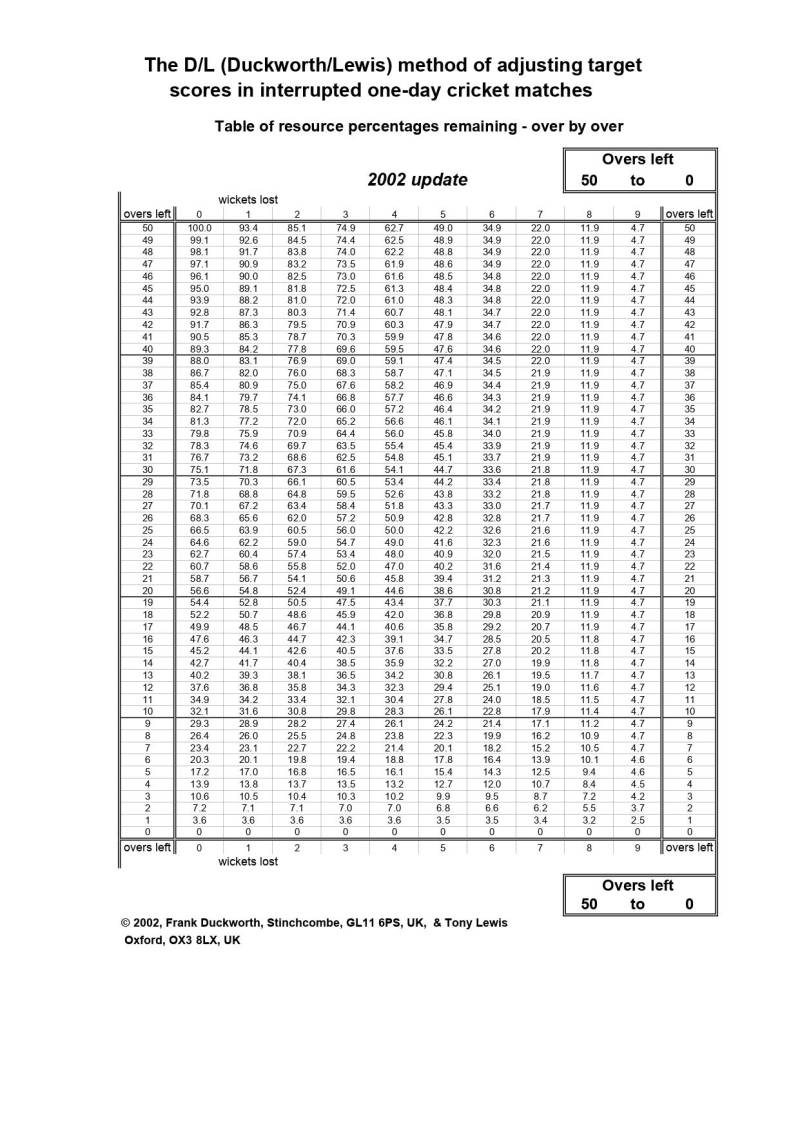 A recent update, known as the Duckworth-Lewis-Stern (DLS) method, was introduced in 2014. The modified method looks at the service percentage at the start of each over, making it fairer for the chaser. team in rain-affected games.